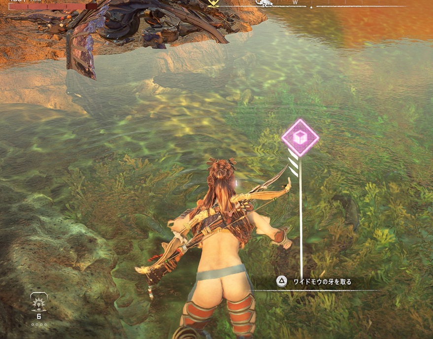 カージャの野営地のたき火からファストトラベルで他のたき火に飛び、またカージャの野営地に戻ると機械獣がリセットされるので、またスカイドリフターの排除からやり直してワイドモウの牙を取ります。