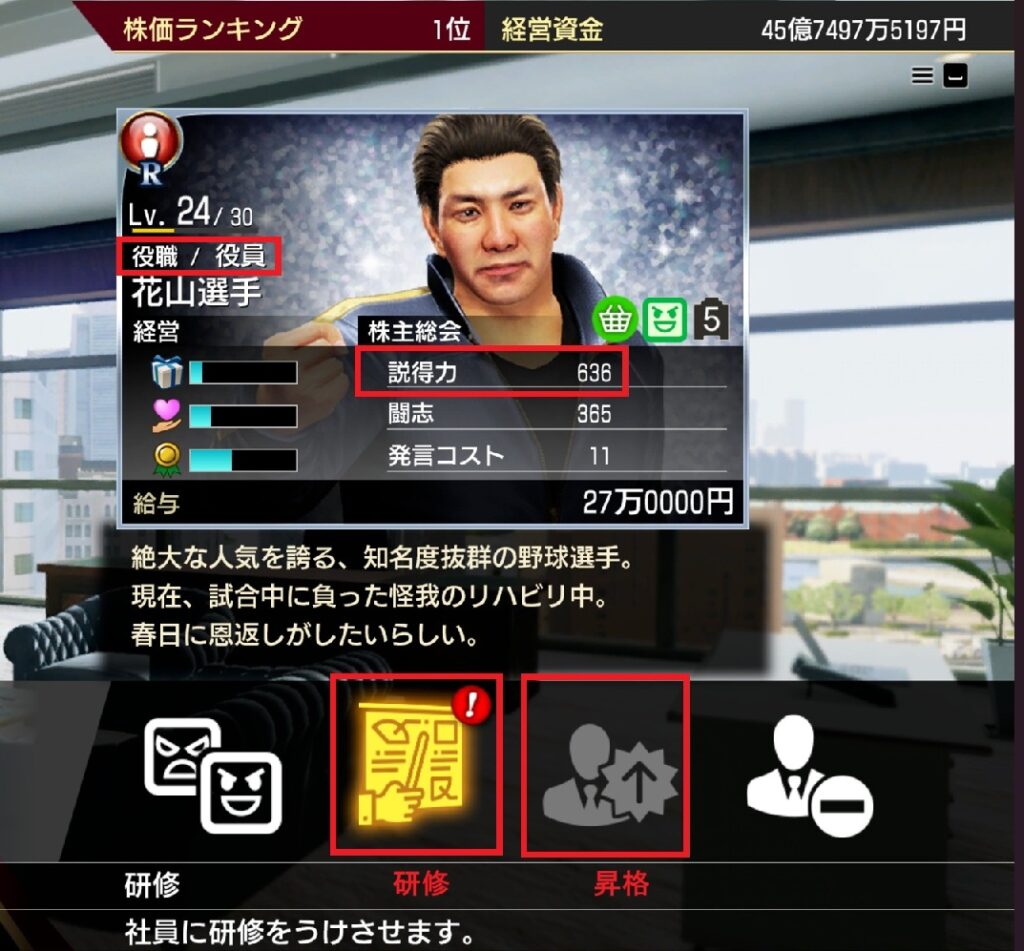 会社経営ができるようになりましたが、メインストーリーには直接関係ないためしばらく放置していました。しかし、ストーリーが進んで大金が必要になり、会社経営をやらざるを得ない状況に…。