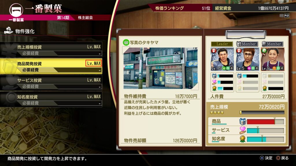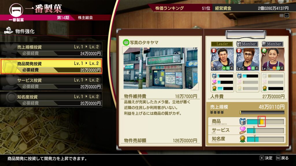 商品開発投資Lv.MAXだが商品力が不足する場合は社員をスキルアップ